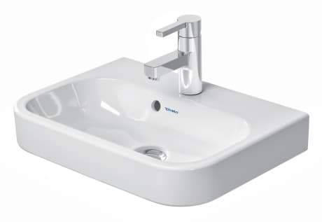 DURAVIT Happy D.2 nábytkové umyvadlo Design by sieger design, s přepadem ze sanitární keramiky s otvorem pro baterii lavice pro umyvadlovou desku. Obdélníkový tvar umyvadla se zaoblenými rohy a jemnými poloměry v nezaměnitelném tvaru písmene D. Chromovaný klip na přepad je součástí dodávky. Dimensions(WxDxH)500x360x145mm. Bílá barva. Obj. č. 0710500000.
