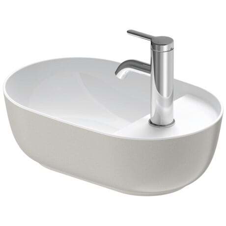 Specifikace DURAVIT Luv umyvadlo na desku 420 mm leštěné, Design Cecilie Manz, bez přepadu a s otvorem pro baterii, vyrobeno z DuraCeram®, oválný tvar mísy s jemnými okraji, velkorysé vnitřní umyvadlo, dříkový ventil s keramickým krytem ventilu, včetně upevnění, oboustranné. Vnitřní umyvadlo s bílou glazurou a vnější barva v následujících variantách: Bílá, písková pololesklá (č. 21), šedá pololesklá (č. 23) a bílá pololesklá (č. 26). Dimensions(WxDxH)420x400x140mm. Barva bílá/bílá. Obj. č. 0381420000. Barva bílá/pískový satén. Obj. č. 0381422100. Barva bílá/šedý hedvábný mat. Obj. č. 0381422300. Barva bílá/bílý satén. Obj. č. 0381422600.