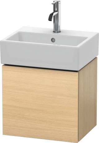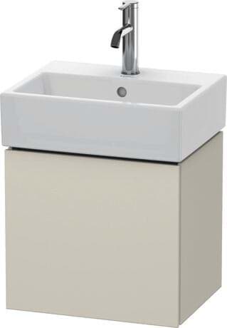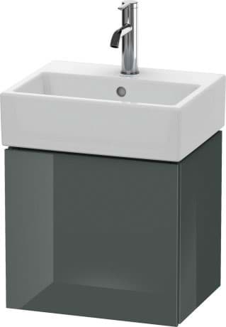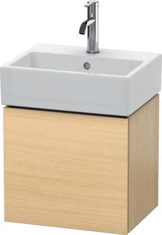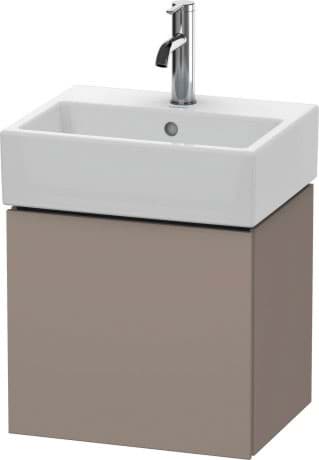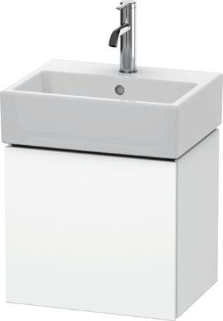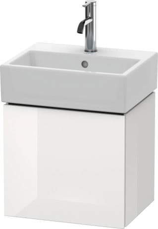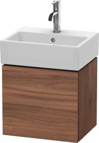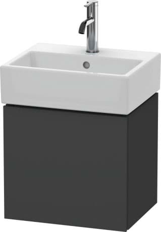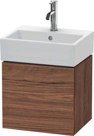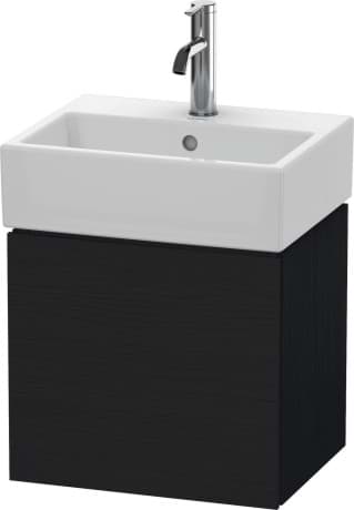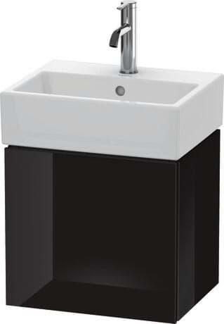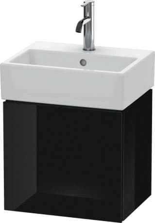 DURAVIT L-Cube umyvadlová podkonstrukce závěsná, Design: Christian Werner, nosný materiál uvnitř korpusu/přední strany: třívrstvá dřevotříska s vysokou hustotou. Obě strany přímo potažené dekorem z melaminové pryskyřice v barvě (57) diamantově černé. Vnější nosný materiál korpusu/přední strany: třívrstvá dřevotřísková deska vysoké hustoty. Oboustranně lisovaný laminát (HPL). Materiál hran: ABS hrany. Necitlivé na vlhkost. S 1 dvířky pro nábytkové umyvadlo Vero Air #072445. Při objednávce uveďte závěs dvířek vlevo(L) nebo vpravo(R). Doporučujeme použít prostorově úsporný sifon #005076. Dimensions(WxDxH)434x341x400mm. Povrchy v dekoru, laku a dýze z pravého dřeva podle aktuálního vzorníku. Obj. č. LC 6245 L/R.