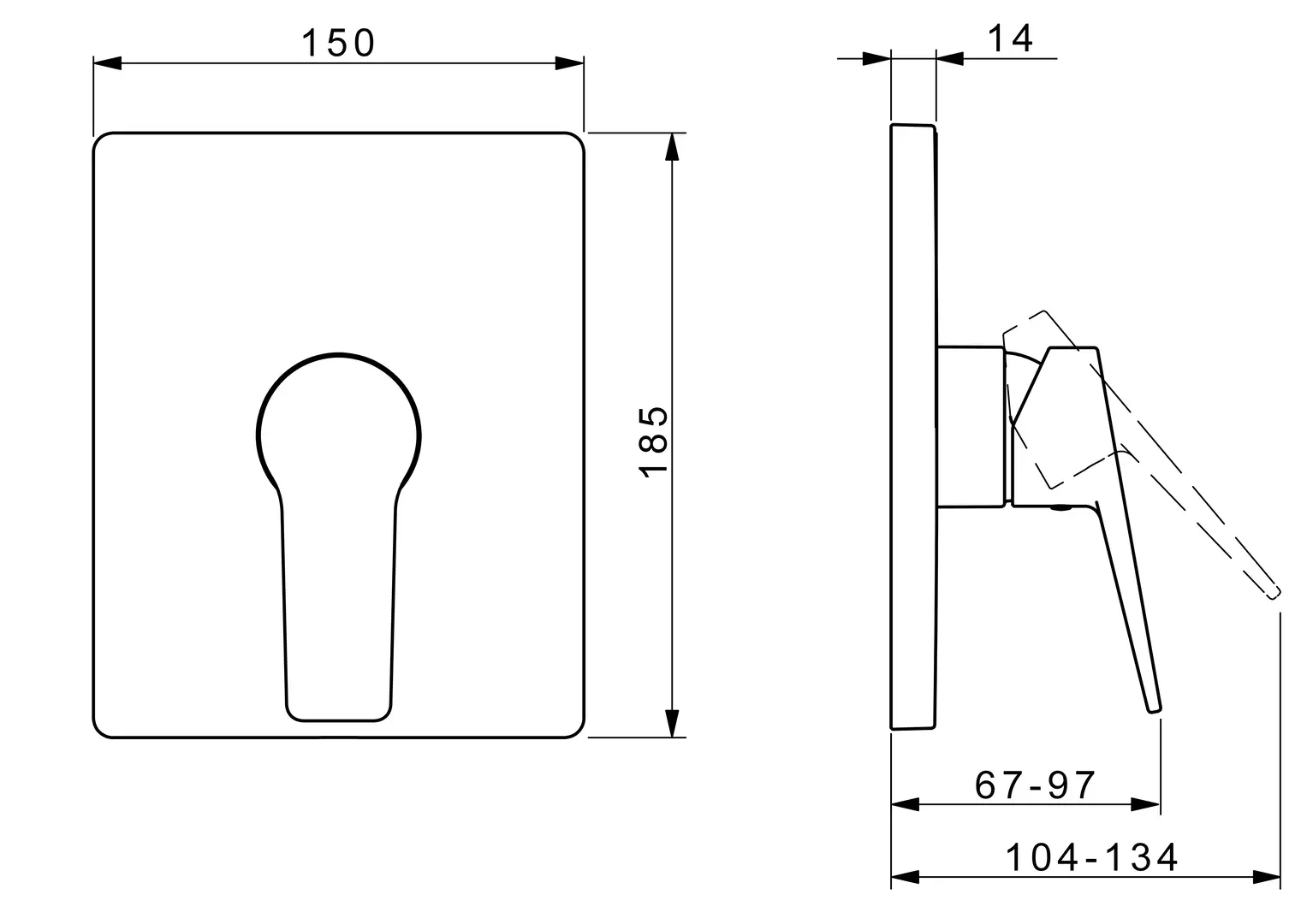 Páka se symboly teplé a studené vody, Jedna ovládací páka / rukojeť