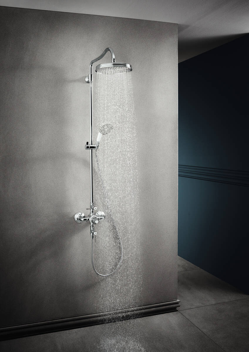 obsah balení: horní sprcha, ruční sprcha, sprchový termostat, sprchová hadice, jezdec, sprchová tyč velikost sprchové hlavice horní sprchy: 240 mm druh proudu horní sprchy: RainAir průtok proudu RainAir při tlaku 3 bary: 14 l/min druh proudu ruční sprchy: RainAir průtok ruční sprchy při 3 barech: 13,3 l/min maximální průtokové množství pro Showerpipe při tlaku 3 bary: 22,4 l/min minimální průtokový tlak: 1 bar minimální provozní tlak: 1 bar maximální provozní tlak: 10 barů jezdec s výškovým nastavením délka sprchového ramena horní sprchy: 450 mm otočné rameno sprchy: otočné rameno sprchy termostat AXOR Montreux bezpečnostní pojistka při 40 °C předem nastavitelné omezení teplé vody výtoky ovládané otočným ovladačem způsob montáže: instalace na stěnu rozměr přívodů: DN15 připojovací závit G ½ rozteč: 170 ± 32 mm s vnitřním zabezpečením proti zpětnému toku průměr sprchové tyče: 22 mm 2 spotřebiče
