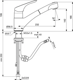 Výhody: Naše úsporná technologie click uvolní plný průtok vody až po překročení mírného odporu rukojeti. Tím se snižuje spotřeba vody o 50 %, Environmentální prohlášení o výrobku, Přepínání mezi normálním průtokem vody a funkcí stříkání pouhým stisknutím tlačítka, Zvětšení akčního rádiusu a usnadnění práce díky výsuvné ruční sprše, Díky výjimečné kvalitě chromového povrchu jsou naše baterie odolnější proti poškrábání a snadněji se čistí, takže se z nich můžete těšit po dlouhou dobu.