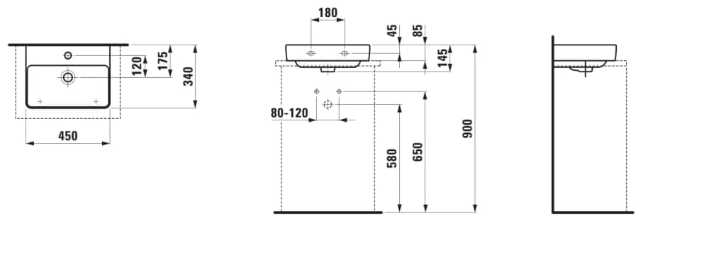 Rozměry: 450 x 340 x 85 mm (délka, šířka, výška) Hmotnost netto (kg): 8.6 Materiál: Sanitární keramika Počet upevňovacích bodů: 2 Provedení: bez otvoru pro baterii S broušenou spodní stranou - vhodné pro instalaci na desku Tvar: Obdélníkový Typ instalace: Umyvadlová mísa, Závěsné Typ přepadu: Standardní Umístění umyvadlové mísy: Uprostřed Umývátko Uspořádání otvorů pro baterie: Bez otvoru pro baterii Vnitřní délka umyvadla (mm): 415 Vnitřní tvar: Obdélníkový Vnitřní šířka umyvadla (mm): 208