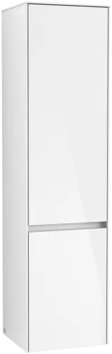 Název položky: Vysoká skříňka Villeroy & Boch Collaro, 2 dveře, 404 x 1538 x 349 mm, lesklá bílá / lesklá bílá Číslo položky: C03300DH Montáž / Typ montáže: Montáž na stěnu Typ otevírání: 2 dveře Závěs dveří: Stop (pant) vlevo Vybavení: 2 x dvířka , 1 x pevná police